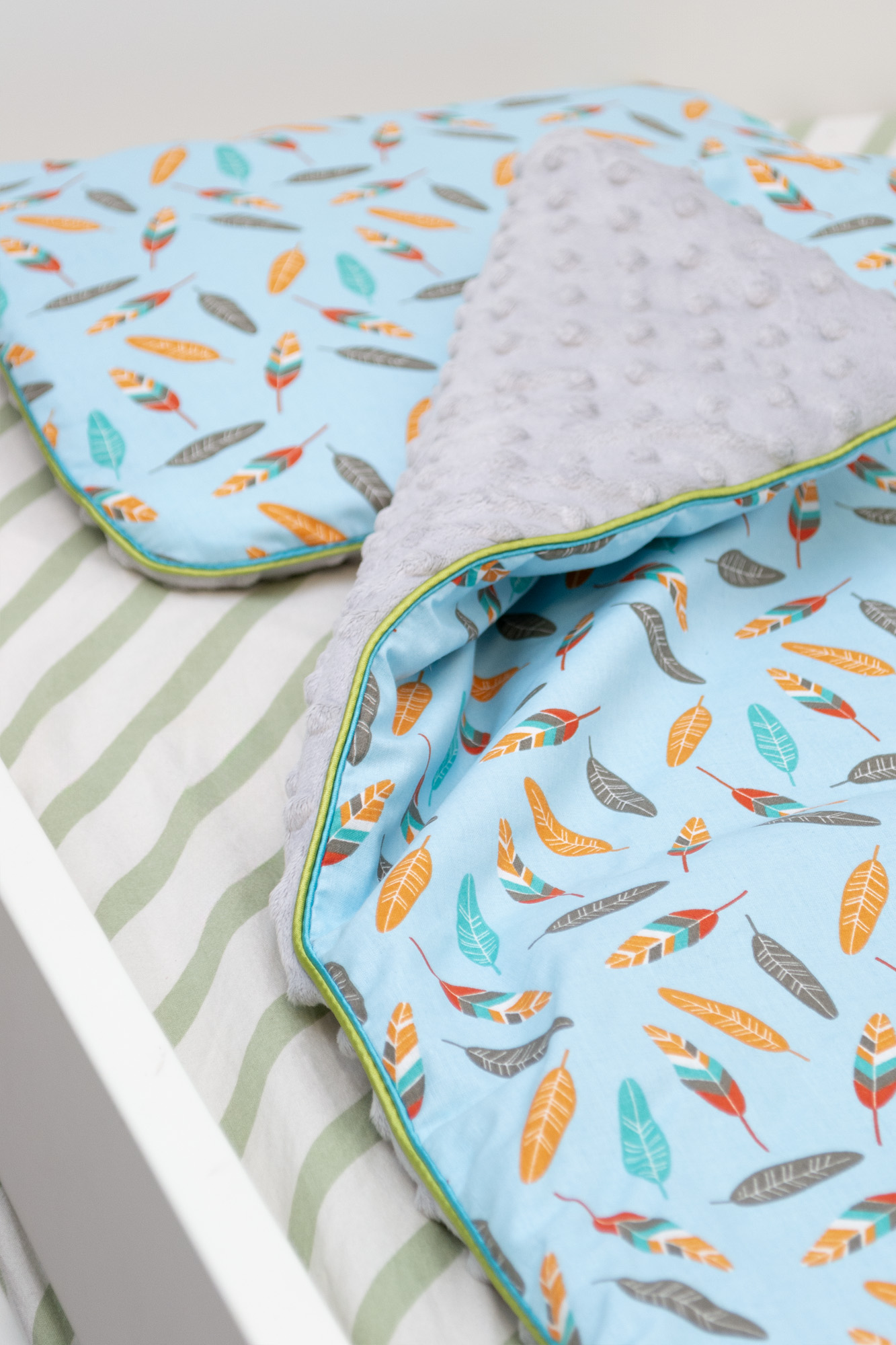 Kolorowy ocieplany kocyk z minky połączony z kolorową 100% bawełną.Wypełniony jest antyalergiczną włókniną.Kocyk ma wymiary 50/75cm Gramatura minky to 350g. Poduszka o wymiarach 30/35 cm wypełniona antyalergiczną włókniną. Komplet ten idealnie nadaje się do wózka Prać można w 30 st. nie wolno suszyć w suszarkach bębnowych,prasować tylko po stronie bawełny.