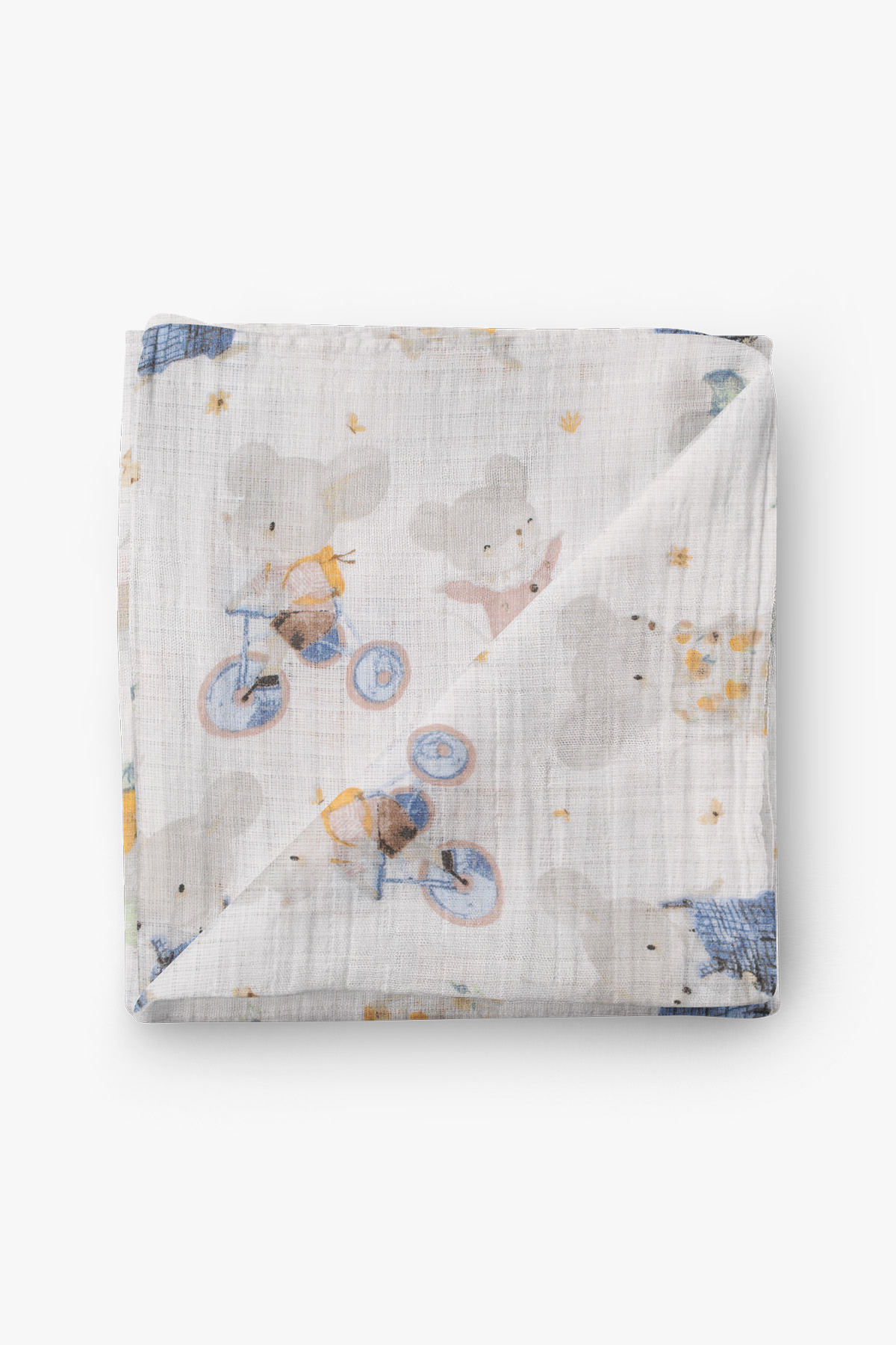 Materiał: 100% bawełna tetra – naturalny, oddychający materiał, bezpieczny dla delikatnej skóry dziecka.