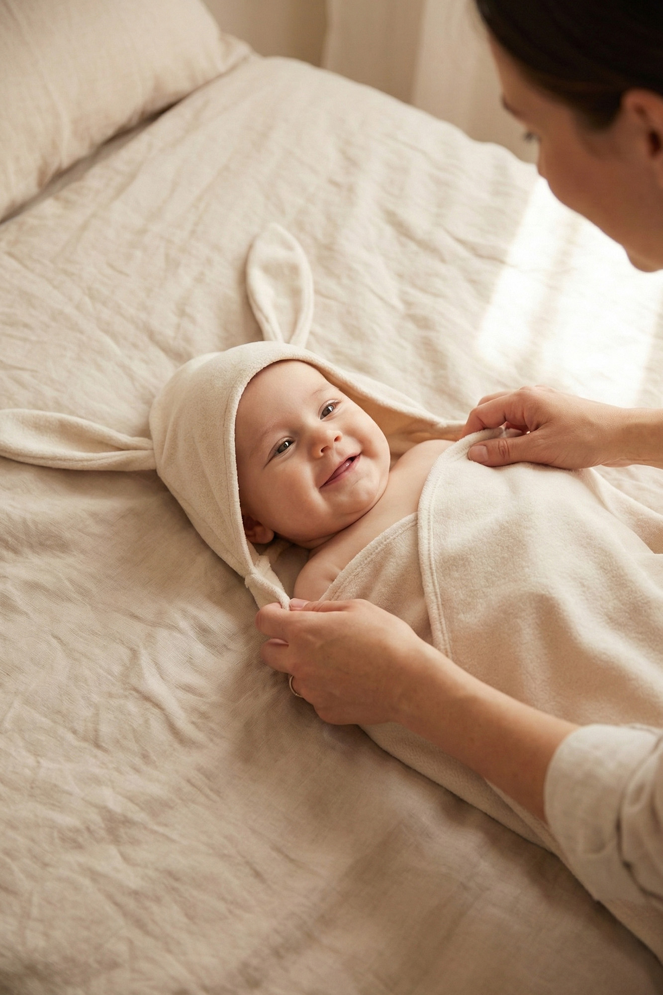 Miękki i funkcjonalny ręcznik z kapturkiem w kształcie uroczego króliczka to idealne rozwiązanie dla niemowląt i małych dzieci. Zapewnia komfort, ciepło oraz skuteczną ochronę przed wychłodzeniem po kąpieli, basenie lub plażowaniu. Kapturek z doszytymi uszkami nie tylko chroni główkę dziecka, ale także nadaje produktowi wyjątkowo estetyczny, dziecięcy charakter.