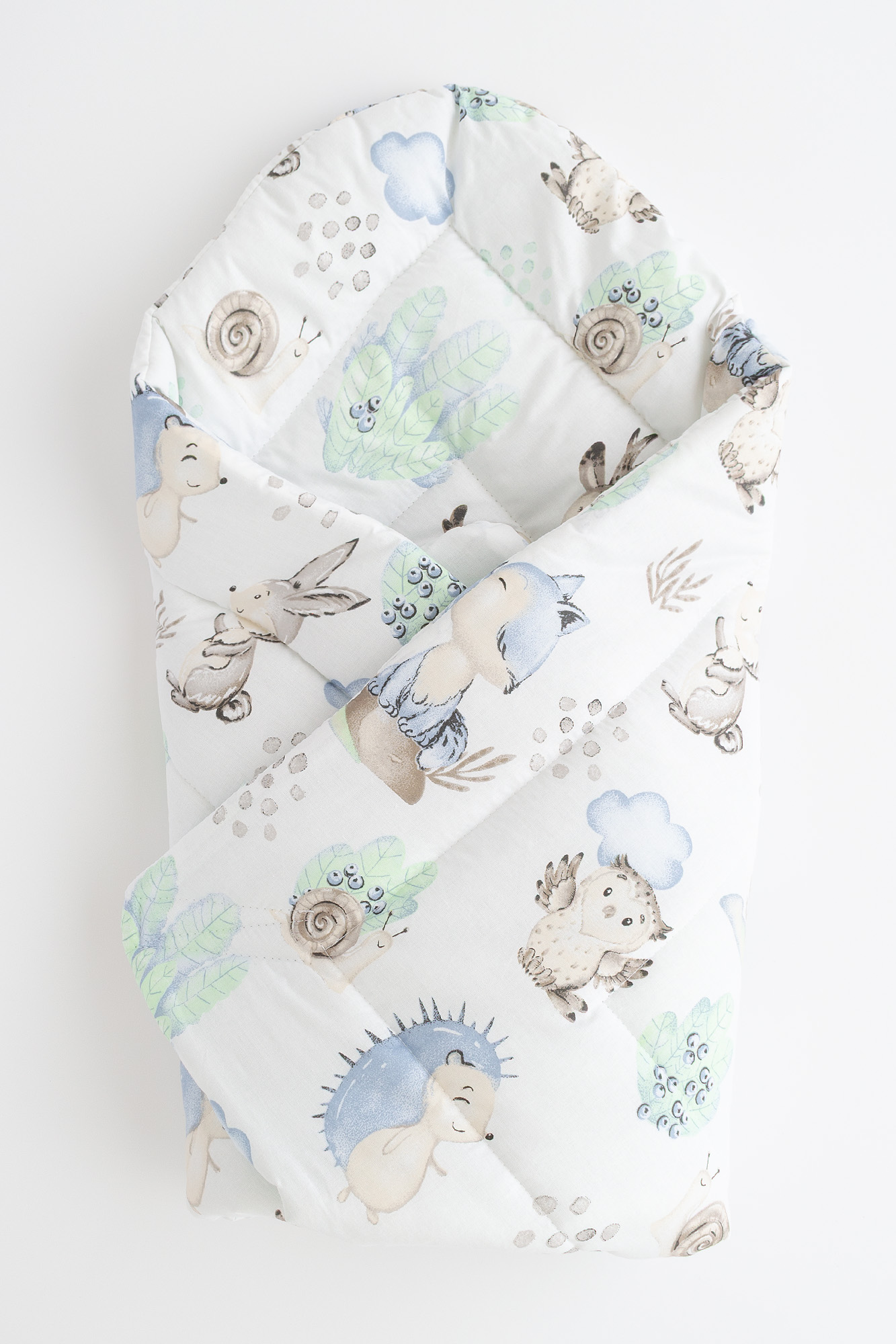 Rożek niemowlęcy z motywem leśnych zwierząt.