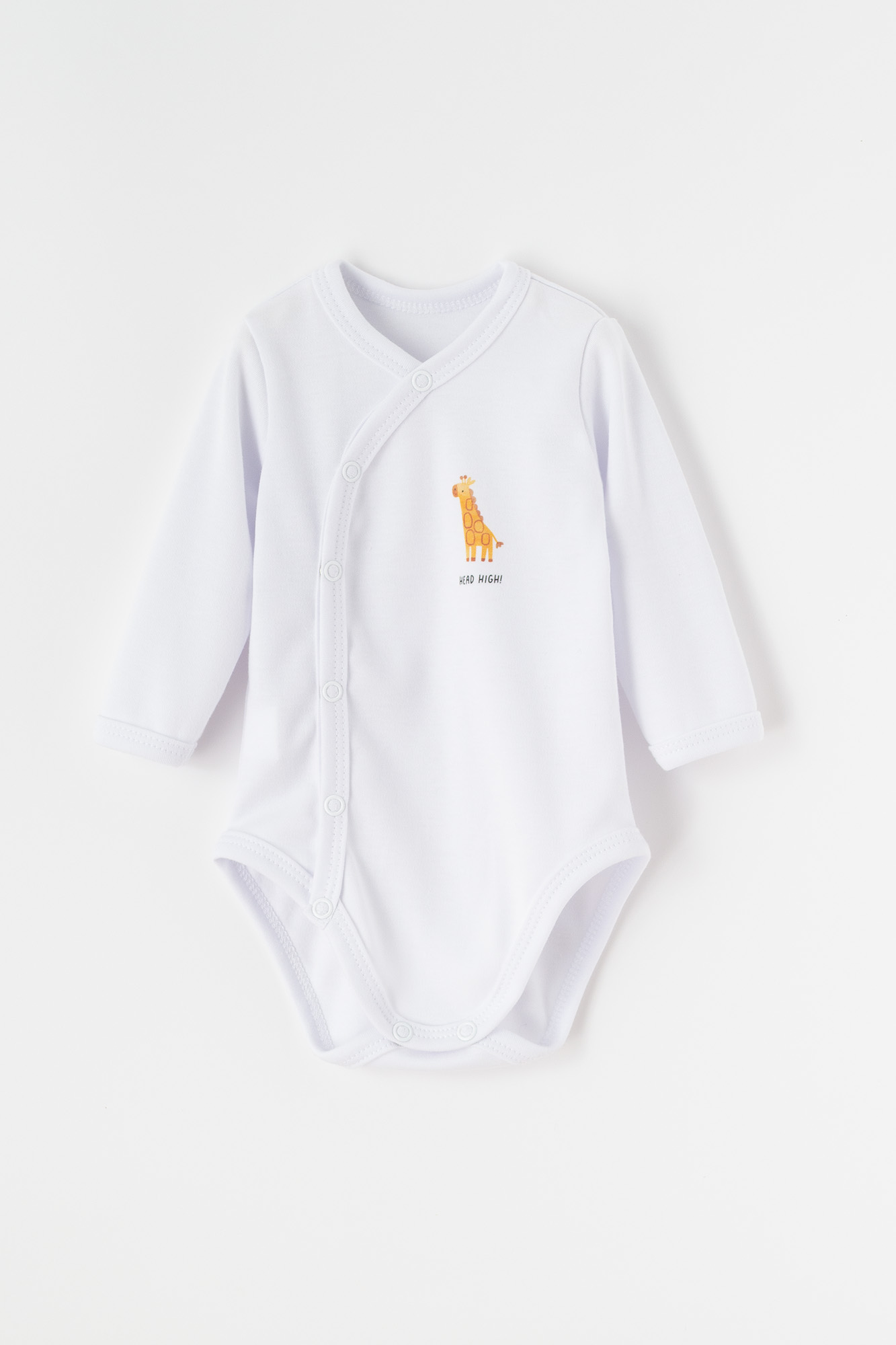 Body niemowlęce z długim rękawem – białe z nadrukiem żyrafy
