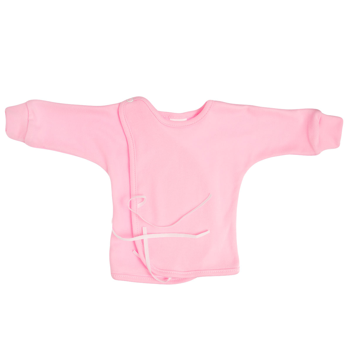 Koszulka niemowlęca z mięciutkiej 100% bawełny. Na ramionku zapinan na napkę, na boku zawiązywana na delikatne troczki aby nic nie uciskało dziecko w jego pierwszych dniach życia. Rękawki zakończone mankietami.