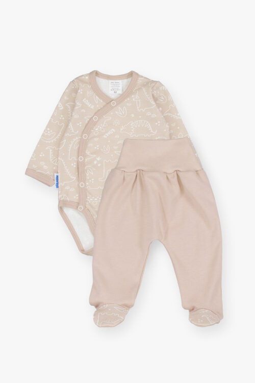 Komplet który składa się z bodów całych rozpinanych, bardzo wygodnych w pierwszych miesiącach dziecka, oraz z półśpioszków które są wygodne w zakładaniu.Całość wykonana z 100% miękkiej kolorowej bawełny. z tej kolekcji są spioszki, kaftanik, pajacyk i łapki