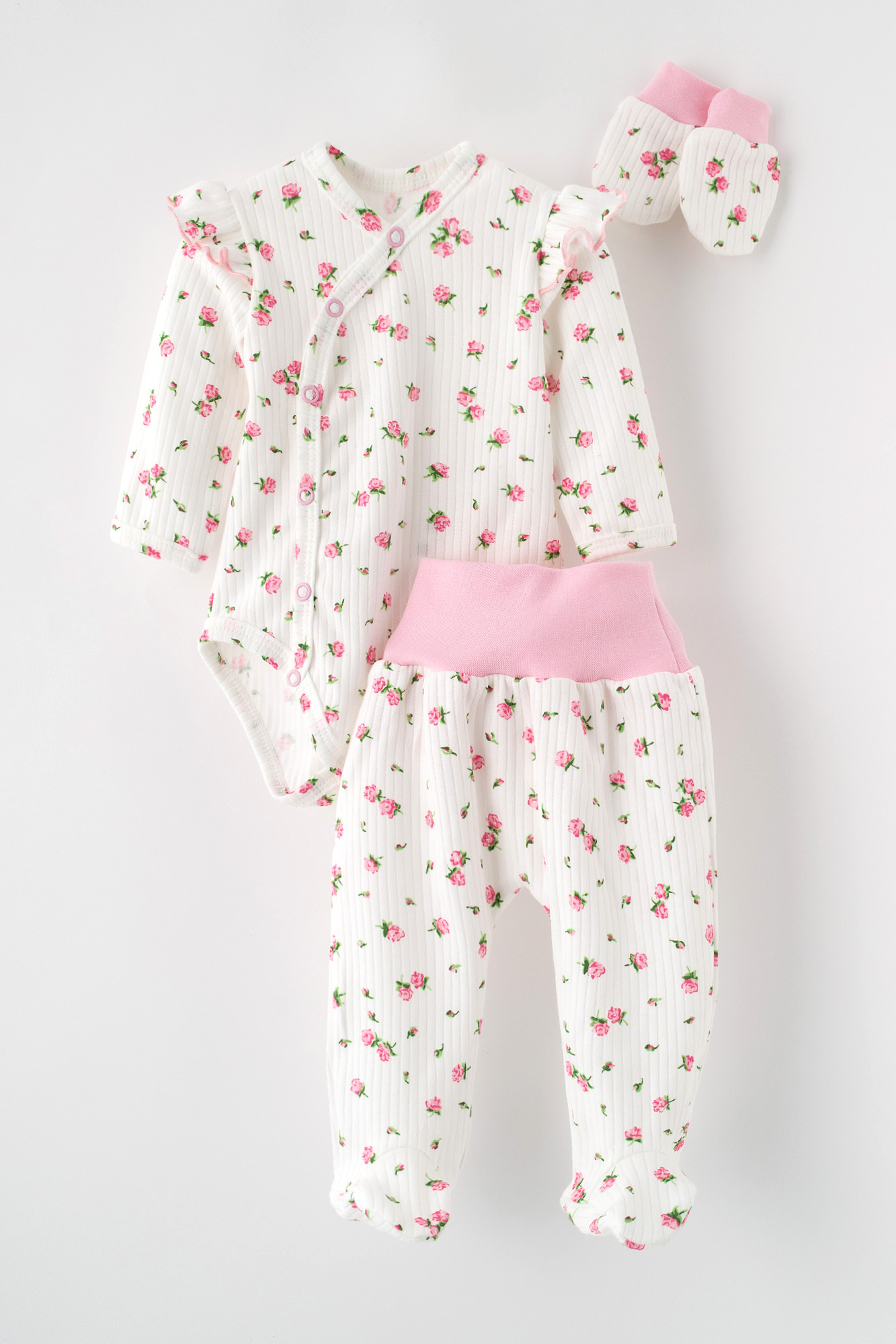 Uroczy komplet niemowlęcy w kwiatowy wzór – 3 elementy