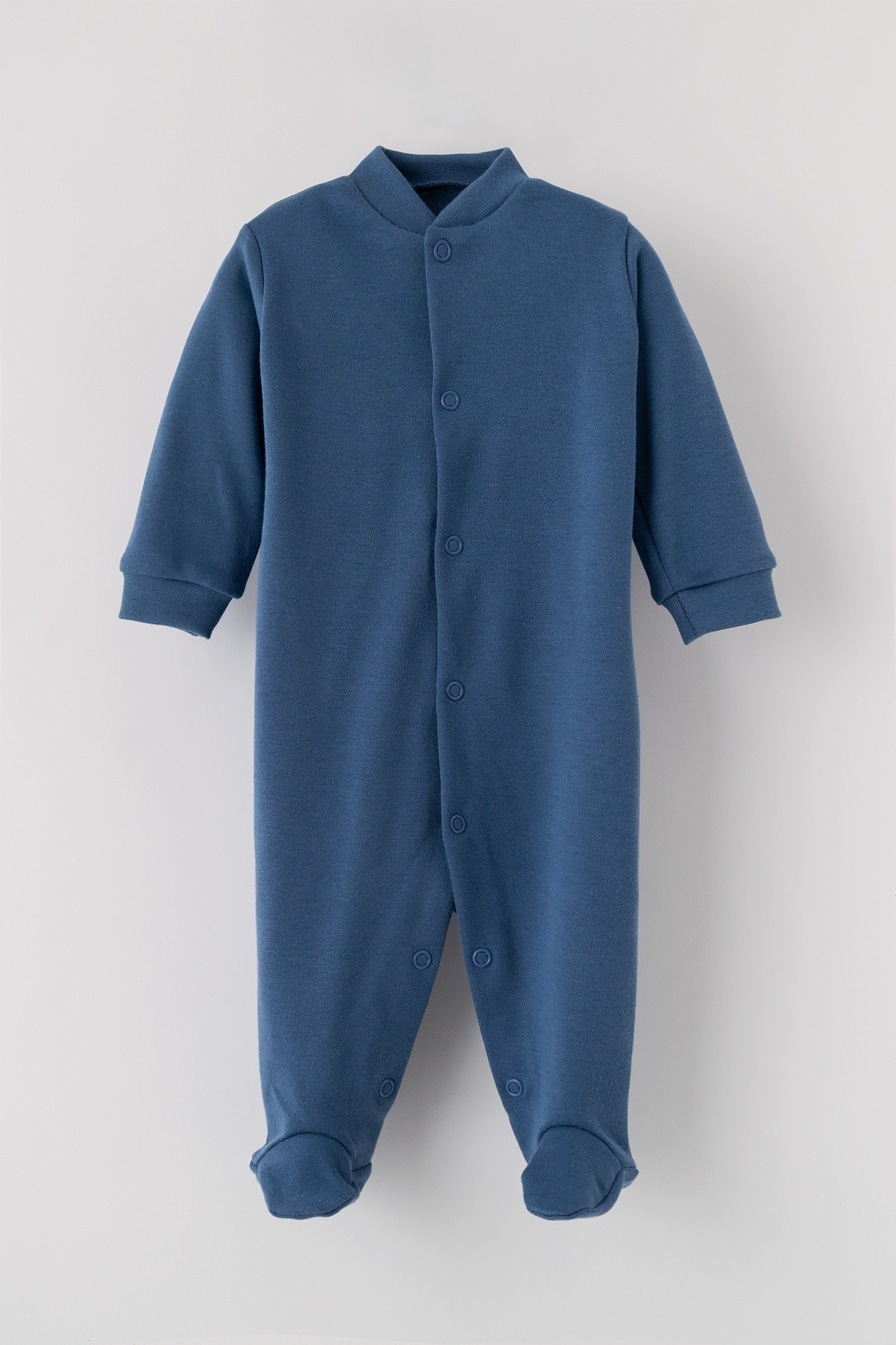 Klasyczny, jednokolorowy pajacyk w głębokim odcieniu niebieskiego. Połączenie maksymalnej wygody z minimalistycznym stylem.